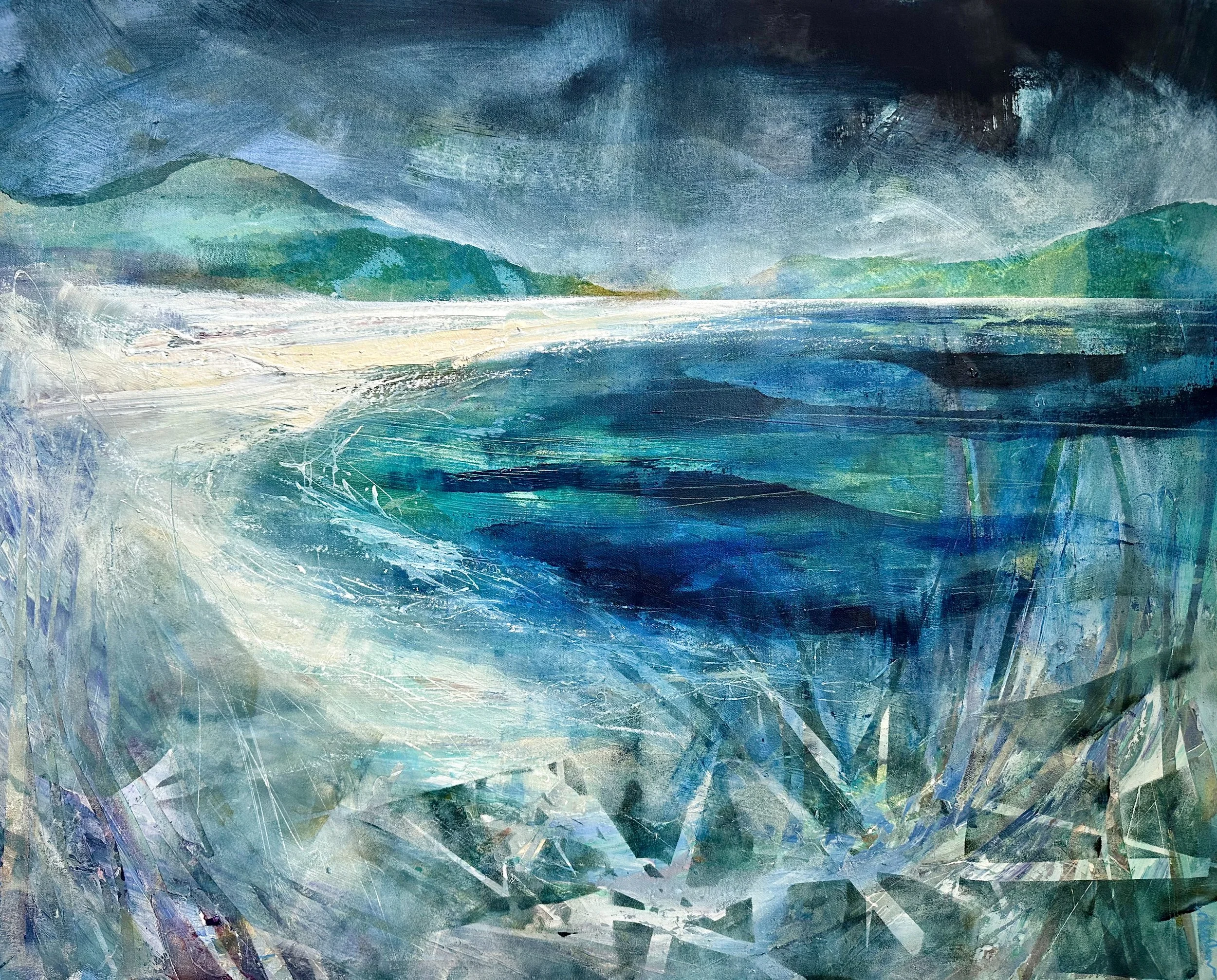 ‘Slow Down and Breathe’ is a much admired original painting which has been recently acquired to furnish the foyer of the flagship, National Treatment Centre in Inverness, officially opened in June 2023. It is a great honour to have work selected to complement this state of the art unique interior and for the public to enjoy contemporary art within a clinical setting.